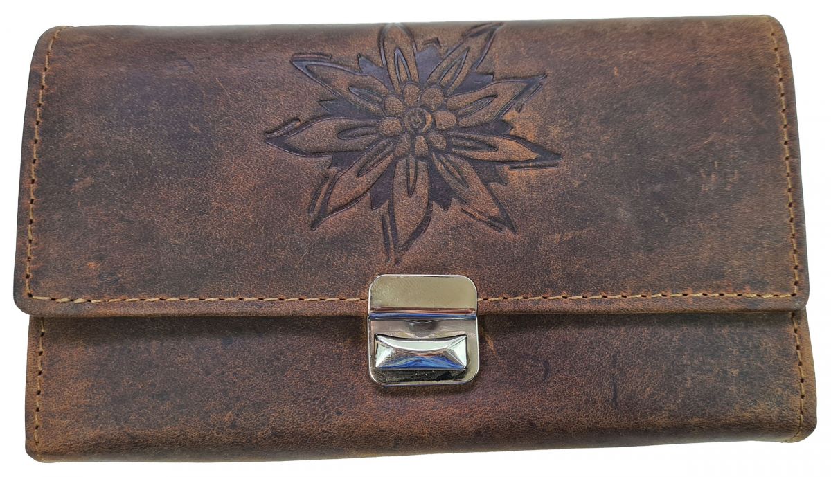 Das ist der perfekte Geldbeutel für alle Kellner, die in bayrischen Lokalen arbeiten. Oder in Tracht, oder auf Oktoberfesten oder Frühlingsfesten oder Bierzelten. Er passt perfekt zu Tracht, Lederhose und Dirndl. Der Geldbeutel ist aus festem rustikalem Büffel-Leder gearbeitet, das naturbelassen wurde. Vorne ist ein Edelweiß eingeprägt. Der ist auch perfekt passend zur Lederhose. Er besitzt ein sehr großes Kleingeldfach und 5 Geldscheinfächer. Dazu ein Reißverschlussfach. Die Größe beträgt 17x11x5 cm. Material: 100% Büffel-Leder (Buffalo). Dazu erhalten Sie noch eine Kette mit Karabinerhaken, mit der Sie den Geldbeutel im Gedränge noch zusätzlich gegen Diebstahl sichern können.