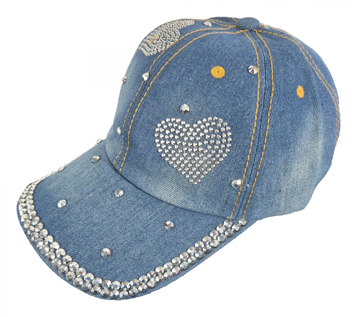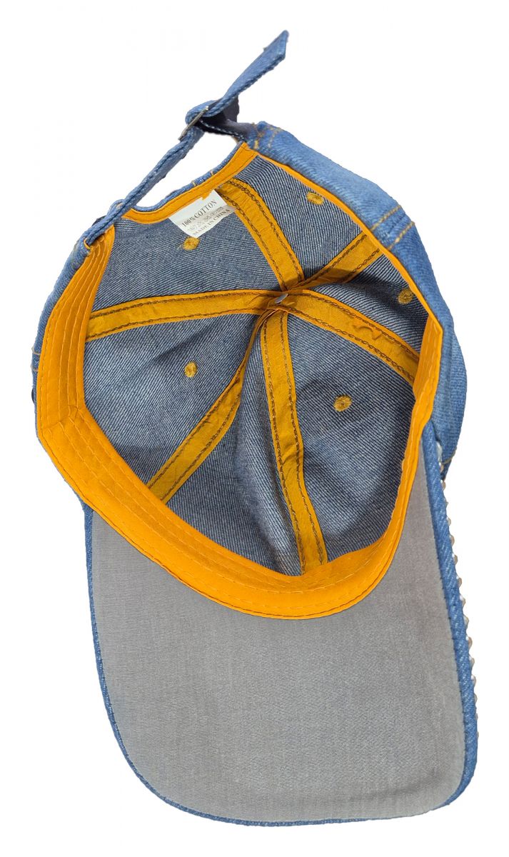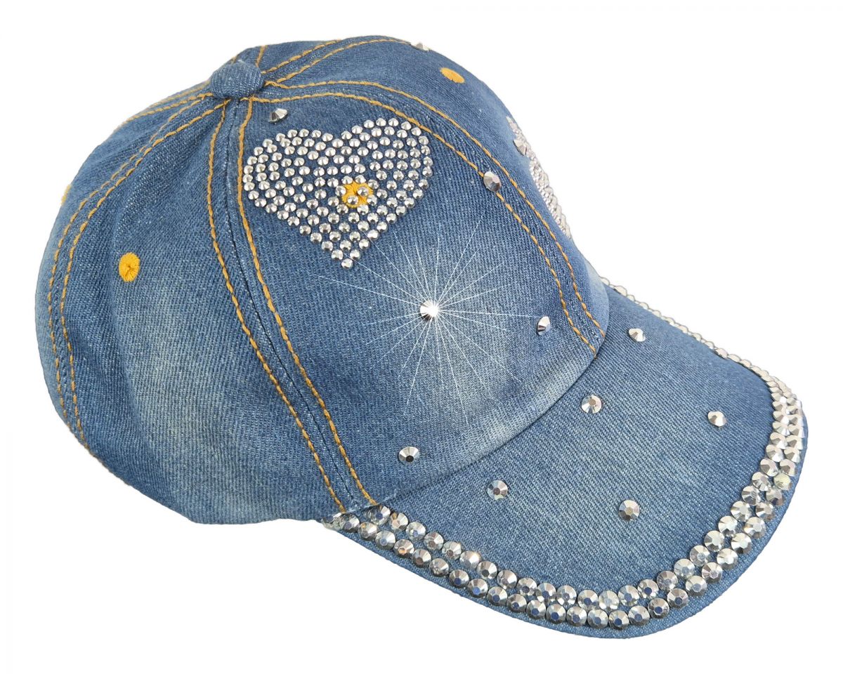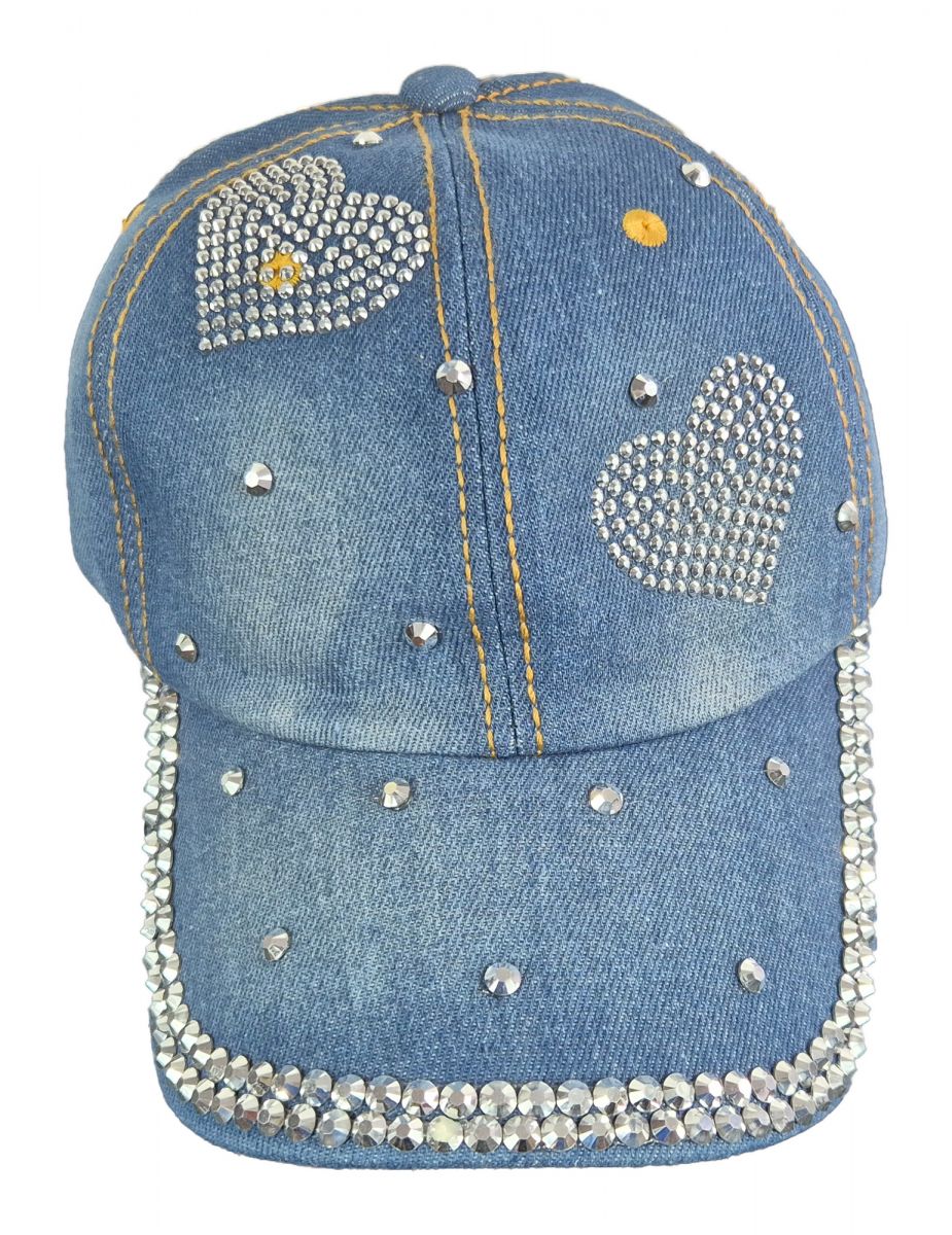 Das ist eine phantastisch schöne und elegante Schirmmütze. In einem hellen Blau und ein bisschen verwaschen. Also top modern. Sie ist aus echtem Denim Jeansstoff gefertigt. Verziert mit zwei Herzen aus kleinen wie Diamanten geschliffenen Nieten, die im Licht geheimnisvoll glitzern. Dazu noch viele einzelne größere ebenso geschliffene Nieten. Die Größe ist verstellbar von 54 bis 62 cm Kopfumfang. Material: 100% Baumwolle. Diese Baseball Cap passt perfekt zu Ihrer Jeanskleidung und sieht besonders modisch elegant aus. Die ist ein Musthave für jede Frau, die auf guten Stil achtet. Hinweis: Ihre Freundin könnte ziemlich neidisch werden.