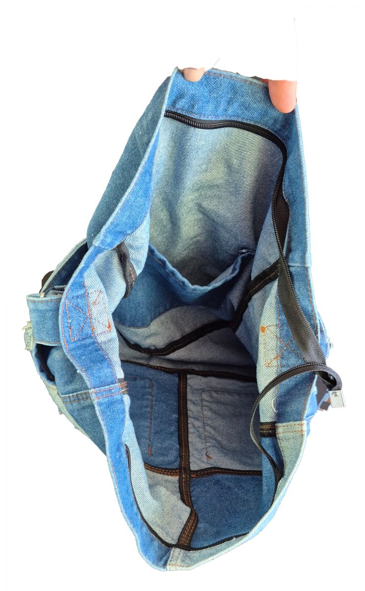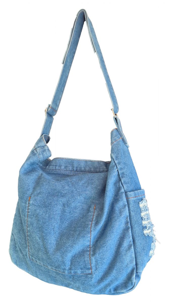 Mit dieser großzügigen Beuteltasche können Sie gut Shopping gehen. Da passt viel rein. Diese Handtasche passt auch perfekt zu allen Ihren Jeans. Sie wurde aus echtem Jeansstoff genäht. Sehr geschickt auf "gebraucht" getrimmt, mit 4 zugenähten Rissen und etwas verwaschen. Die Tasche hat vorne zwei Taschen. Da passt perfekt auch Ihr Handy oder der Autoschlüssel rein. Die Innenseite aus Jeans-Stoff bietet noch1 Seitenfach, in das auch größere Handys passen. Und auf beiden Seiten haben Sie noch je eine Tasche für eine Getränkeflasche. Die Tasche selbst wird mit Reißverschluss verschlossen. Der Henkel ist sehr weit verstellbar, sodass Sie die Tasche als Tragetasche oder auch als Umhängetasche über der Schulter tragen können. Die Größe beträgt 45x31x12cm. Material: 100% Baumwolle. Diese Handtasche ist ein Musthave im Kleidungsschrank bei jeder modischen Frau.