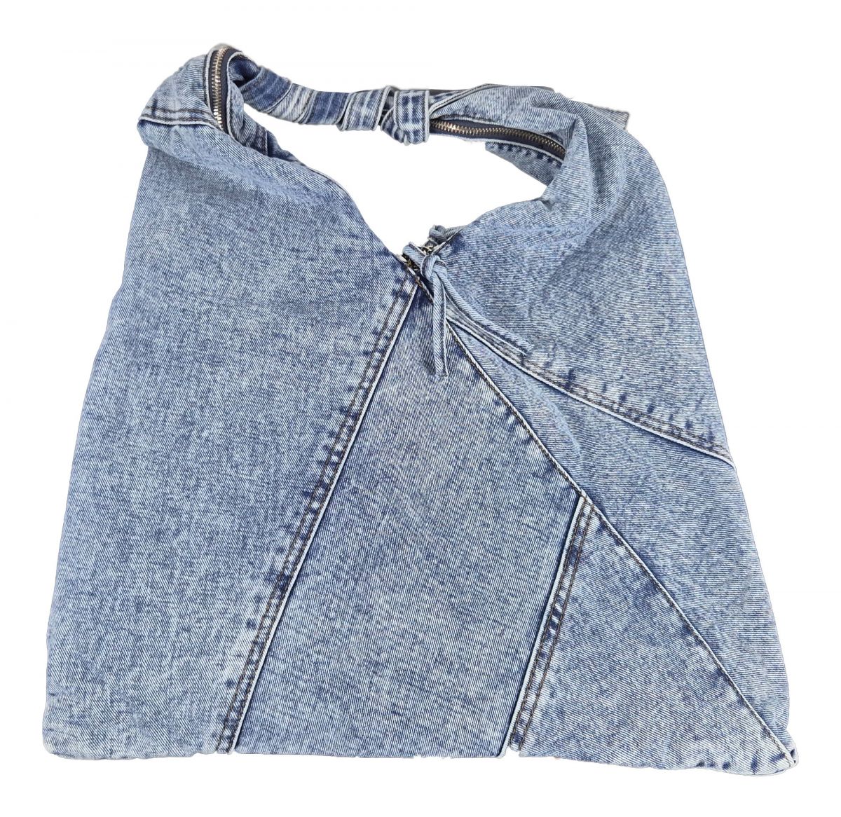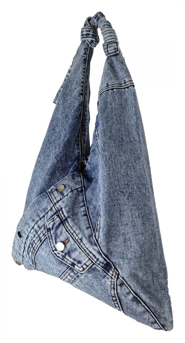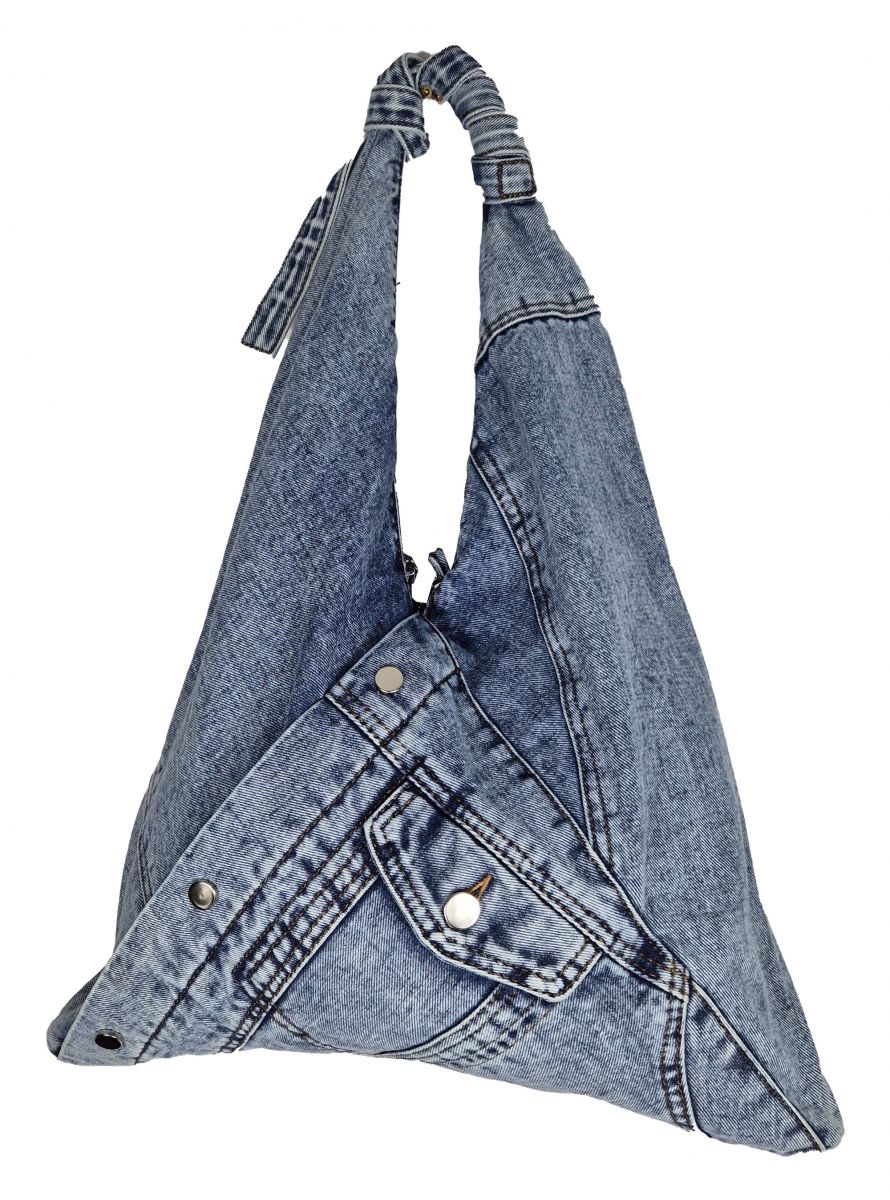 Diese großzügige Beuteltasche wäre ideal für Ihre Sport- und Fitness-Sachen. Da passt viel rein. Sie ist geräumig und schick. Es gibt keine störenden Einteilungen oder Seitentaschen in dieser Tasche. Einfach alle Sportsachen rein und los gehts. Sie können sie auch zum Shopping mitnehmen. Diese Handtasche passt perfekt zu Ihren Jeans. Sie wurde aus einem echten Jeansstoff in hellblau genäht. Sie sehen vorne auch die Tasche. Da passt zum Beispiel der Autoschlüssel rein. Innen ist sie mit schwarzem Futter ausgekleidet. Die Tasche wird auch mit 2 Reißverschlüssen verschlossen. Man kann sie auch gut über der Schulter unter dem Arm tragen. Die Größe beträgt 42x34cm. Material: 100% Baumwolle. Diese Handtasche ist ein Musthave im Kleidungsschrank bei jeder modischen Frau.