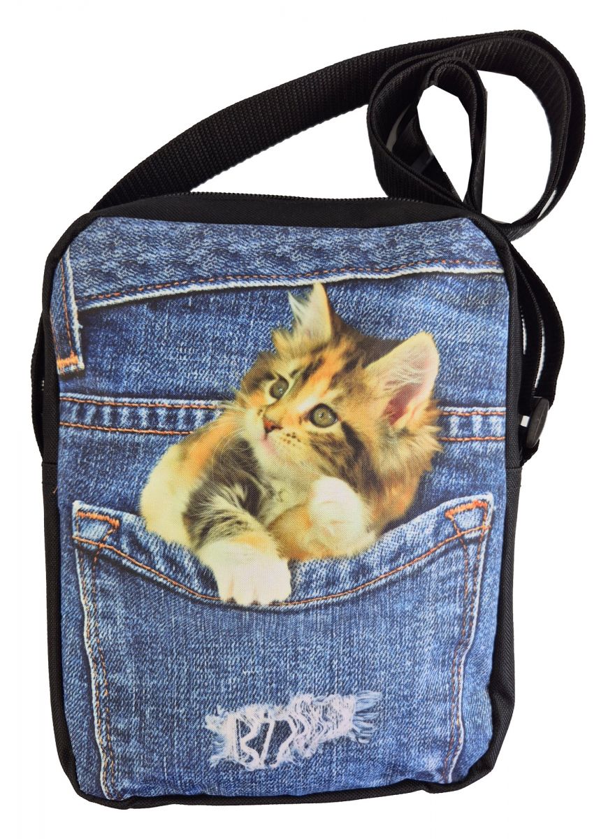 Diese Crossbody Handtasche ist der Tophit der aktuellen Mode. Eine süße neugierige Katze schaut aus einer Jeanstasche raus. Das schönste Geschenk, das man einer Katzenbesitzerin machen kann. Dieses Bild ist in einem speziellen 3D-Druck hergestellt. Dadurch sieht die Katze richtig plastisch dreidimensional aus. Als würde sie gleich aus der Tasche springen. Die Größe der Tasche beträgt 25x20x4cm. Innen ist sie mit schwarzem Stoff ausgekleidet und hat dort noch eine Seitentasche. Auf der Rückseite gibt es auch eine Seitentasche mit Reißverschluss, die wäre perfekt für das Handy. Der Schultergurt ist sehr weit verstellbar. Material: 100% Polyester. Diese Tasche passt wirklich zu jedem Outfit, ganz besonders aber auch zu jeder Jeans. Um diese tolle Tasche wird sie jedermann beneiden.