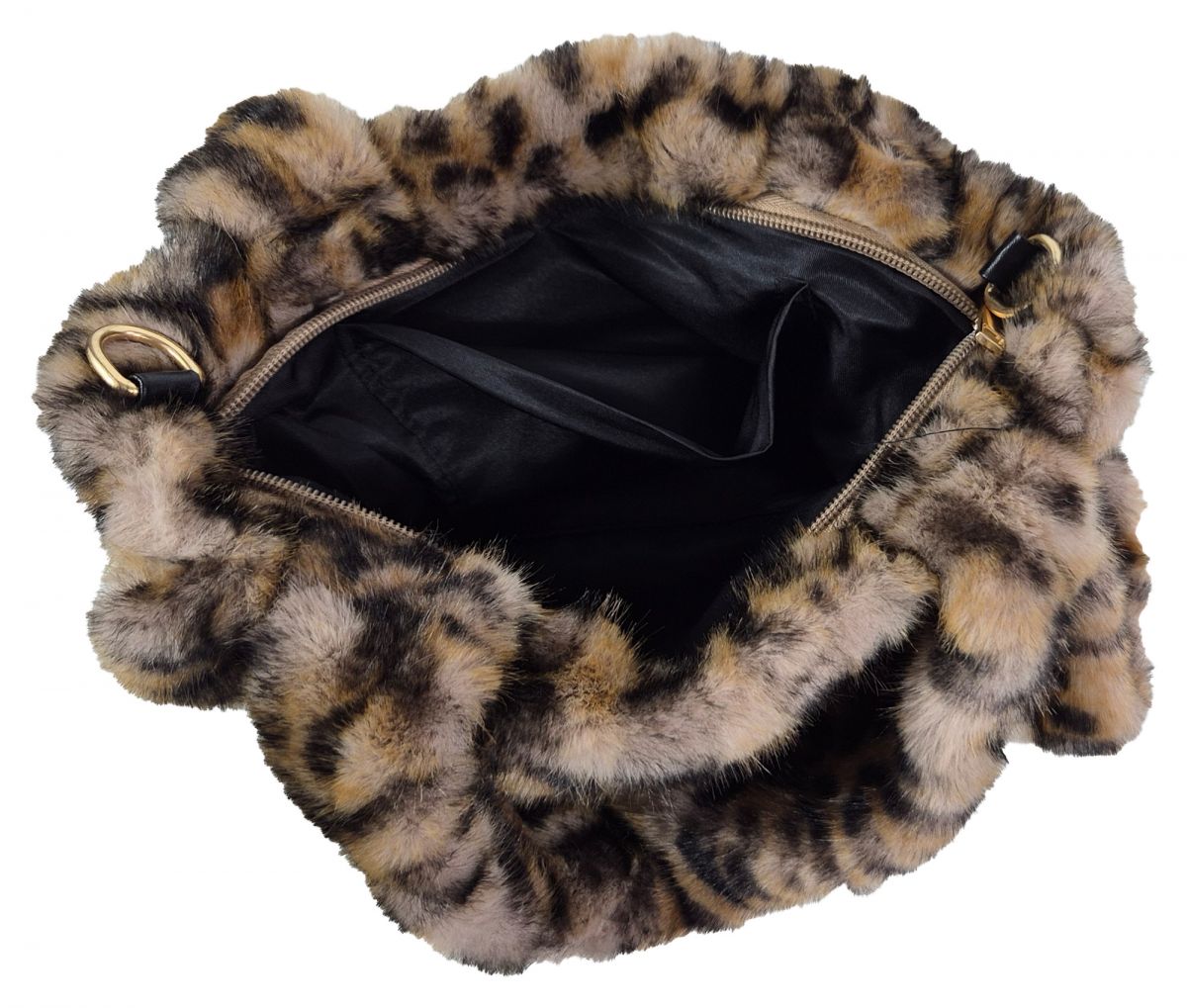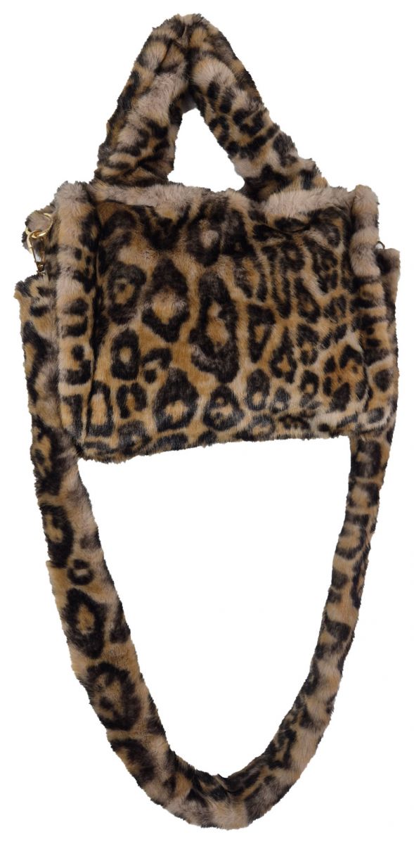 Eine total süße kleine Handtasche aus kuscheligem Kunstpelz im mode-aktuellen Leopardenmuster. Die ist sensationell - die passt haargenau zu unserer Pelzjacke Leopard. Die Tasche hat eine Größe von 27x22x8cm und ist damit die perfekte Abendtasche zum Ausgehen. Das Innenfutter ist schwarz und hat eine Seitentasche. Man kann die Tasche auch waschen wie ein Kleidungsstück. Dazu gibt es noch einen langen abnehmbaren Schultergurt aus demselben Material mit demselben Muster. Die Tasche wird mit Reißverschluss verschlossen. Material: 100% Polyester. Sie ist ein echter Mode-Hit.