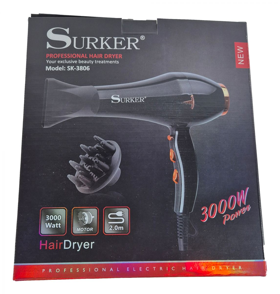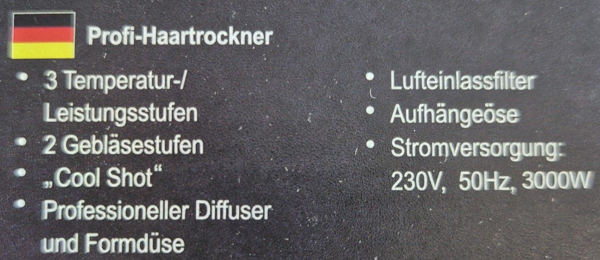Dieser Haarfön hat richtig Power. 3000 Watt. Luftstrom und Wärme können verschieden eingestellt werden.
