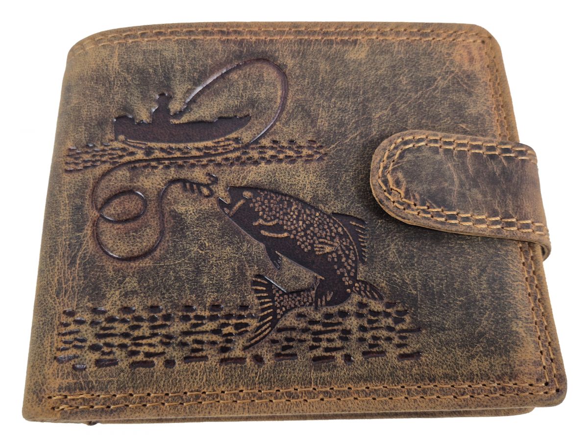 Dieser Geldbeutel passt ideal zum Angler. Er wurde aus echtem Büffel-Leder und mit einer sehr aufwändigen Ausstattung gefertigt. Das Leder wurde naturbelassen und wirkt rustikal. Da wurde keine Farbe und kein Plastik draufgesprüht, wie es bei fast allen Lederartikeln in Deutschland der Fall ist. Hier haben Sie wirklich noch das echte natürliche Leder in der Hand. Auf der Vorderseite ist ein Angler mit Fisch an der Angel geprägt. Die Geldbörse bietet 3 Durchsichtfächer für Fotos, Führerschein oder KFZ-Schein. Außerdem gibt es 9 Kartenfächer. 2 genähte Geldscheinfächer und ein Münzenfach mit Druckknopf. Dazu gibt es noch 1 Dokumentenfach und ein weiteres Fach, das mit Reißverschluss geschlossen wird. Die Größe beträgt 12x10 cm. Doppelt genäht für eine lange Haltbarkeit. Der ist wirklich das beste Geschenk für jeden Angler.