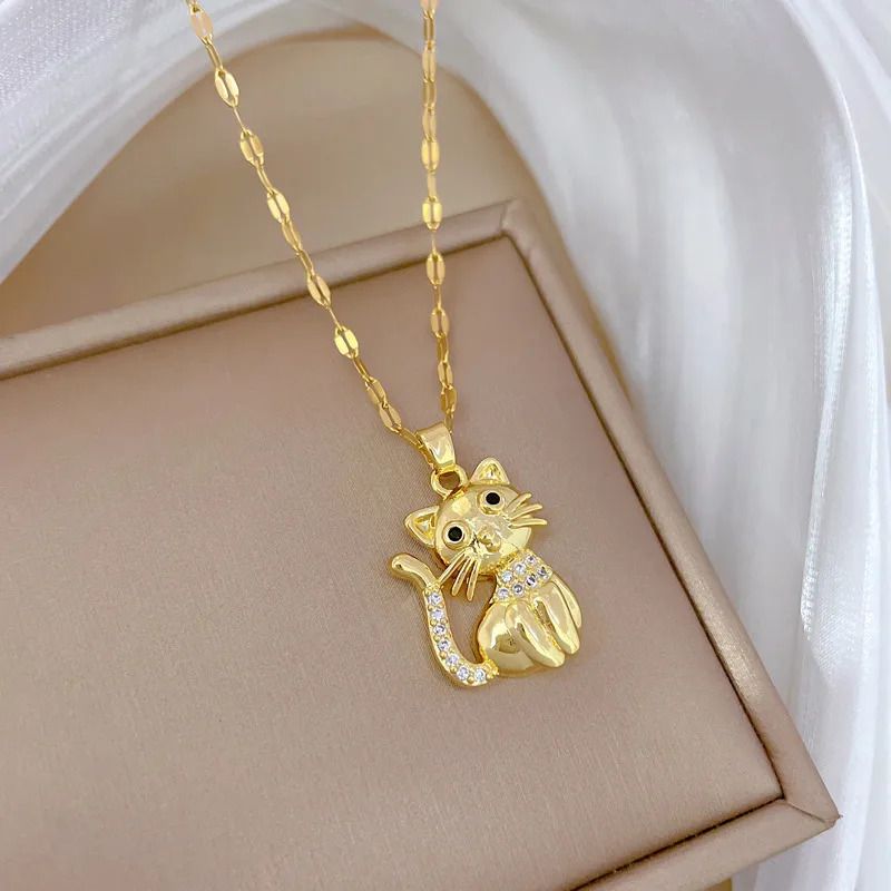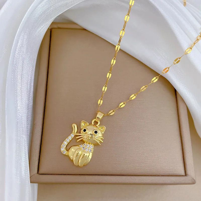 Das ist das schönste Geschenk, dass Sie einer Katzenbesitzerin machen können. Dieser Anhänger an einer goldfarbenen Kette ist ein Hingucker. Er zeigt eine total süße Katze mit schwarzen Augen, deren Schwanz und Halskette mit ganz kleinen Strasssteinen verziert sind, die im Licht geheimnisvoll schimmern. Die Größe beträgt 2,5x1,7 cm. Die Kette dazu ist 46 cm lang. Der Wert dieses Artikels liegt in dem Anhänger, der Katze. Die Kette ist nur eine kleine Zugabe, sie ist leicht und einfach. Aber Sie können diesen wundervollen Anhänger ja auch an jede andere Kette hängen. Material: 100% Edelstahl. Die Farbe ist Gelbgold. Mit diesem Anhänger werden Sie mit Sicherheit von allen bewundert.