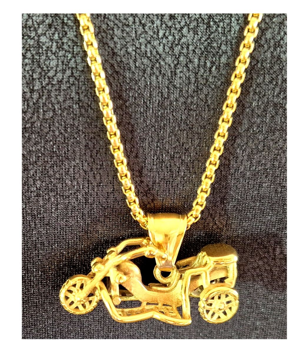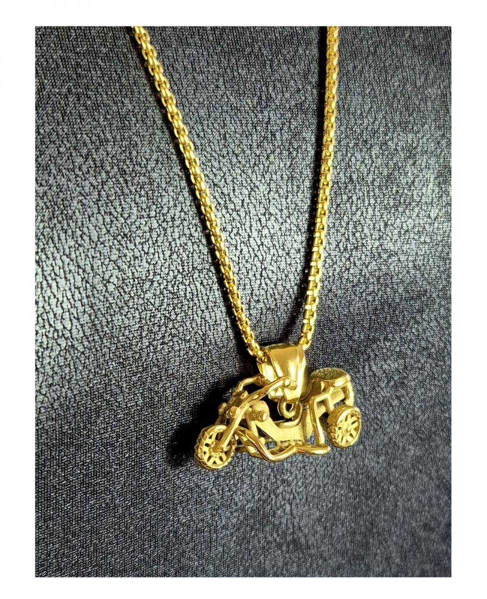Das ist das schönste Geschenk, dass Sie einer Motorradfahrerin oder Beifahrerin machen können. Dieser Anhänger an einer goldfarbenen Kette ist ein Hingucker. Er zeigt ein Motorrad mit drei Rädern, also ein Trike. Der Anhänger ist nicht flach wie so viele andere. Dieses Bike ist dreidimensional und mit allen Details ausgestattet. Die Größe beträgt 30x10x10 mm. Die Kette dazu ist 60 cm lang. Material: Edelstahl goldeloxiert. Die Farbe ist Gelbgold. Mit diesem Anhänger werden Sie mit Sicherheit von allen bewundert.