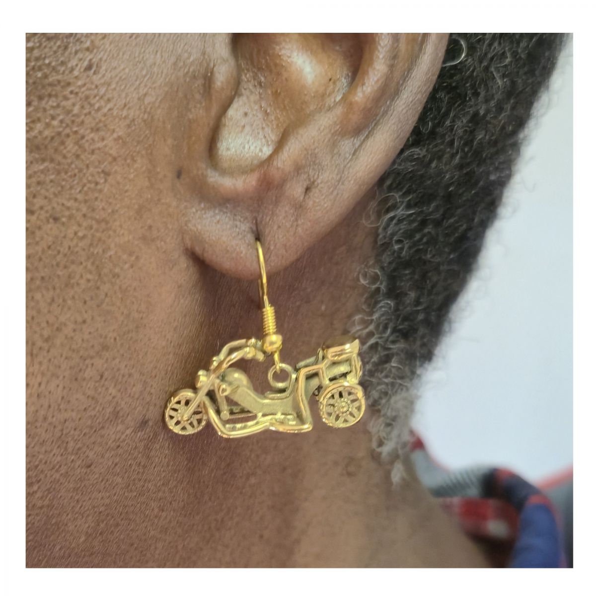 Das ist das schönste Geschenk, dass Sie einer Motorradfahrerin oder Beifahrerin machen können. Diese Ohrringe sind ein echter Hingucker. Sie zeigen ein Motorrad mit drei Rädern, also ein Trike. Die Ohrringe sind nicht flach wie so viele andere. Dieses Bike ist dreidimensional und mit allen Details ausgestattet. Die Größe beträgt 30x10x10 mm. Sie erhalten 1 Paar. Material: Edelstahl goldeloxiert. Die Farbe ist Gelbgold. Mit diesen Ohrringen werden Sie mit Sicherheit von allen bewundert.